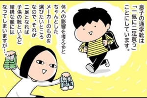はじめまして、イラストレーターのちょっ子と申します。 息子と夫との三人で暮らしています。 息子は現在小学二年生。育ち盛りで、服や靴は買っても買ってもみるみるサイズアウトしてしまうようになりました。 さてここでは、息子の通…