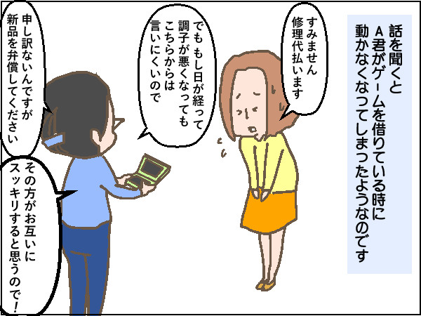 「壊れたゲーム機は買い直せるけど、壊れた人間関係は戻せない」という彼女の助言から、お友達に借りることはさせないでおこうと夫婦で決めたからです。